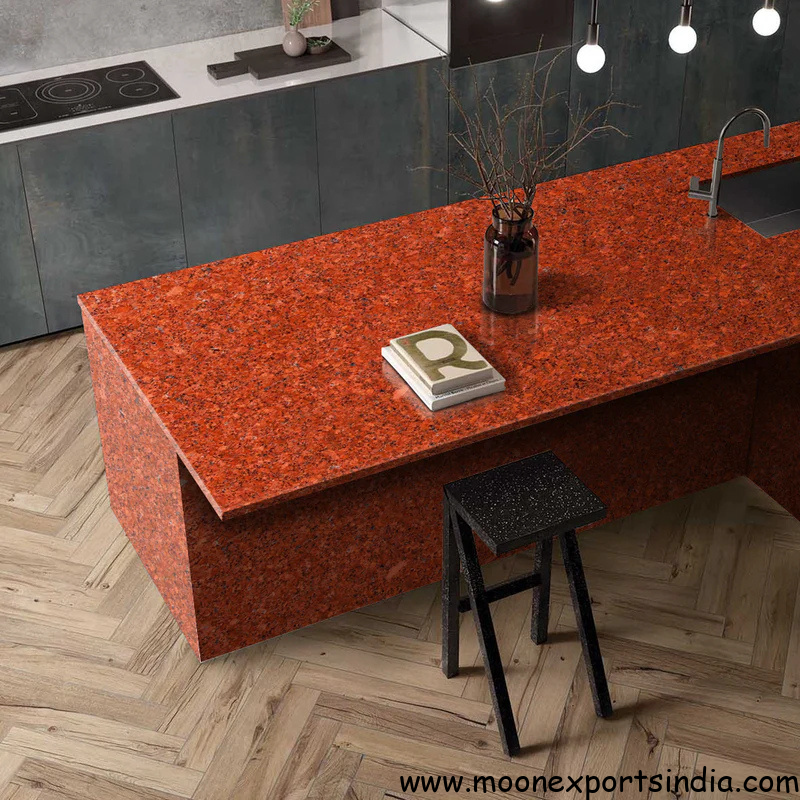Durable and resilient, Jhansi Red Granite is highly resistant to heat, scratches, and stains, making it an excellent option for high-traffic areas such as kitchen countertops, backsplashes, and flooring. Its rich, earthy tones and timeless beauty ensure it can seamlessly blend with both traditional and modern interior designs, offering a luxurious touch that stands out in any room.